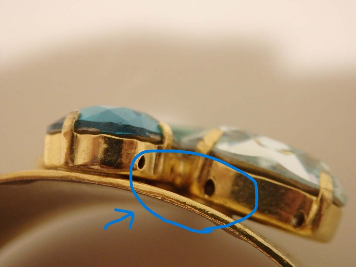 ですからね、ビジューの部分だけとって指輪とかにしようかしらと思い、引っ張ったのですがびくともせず。。。どうやらはんだつけ?溶接?されていました。