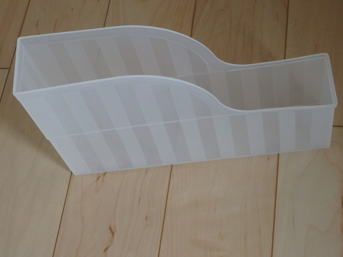 これも郵便物や紙を入れるために使っていましたが、上記のものと同じ理由で使わなくなったので捨てることにしました。というかですね、ファイル立てを2個買うなら同じものにしないと落ち着きませんよね。