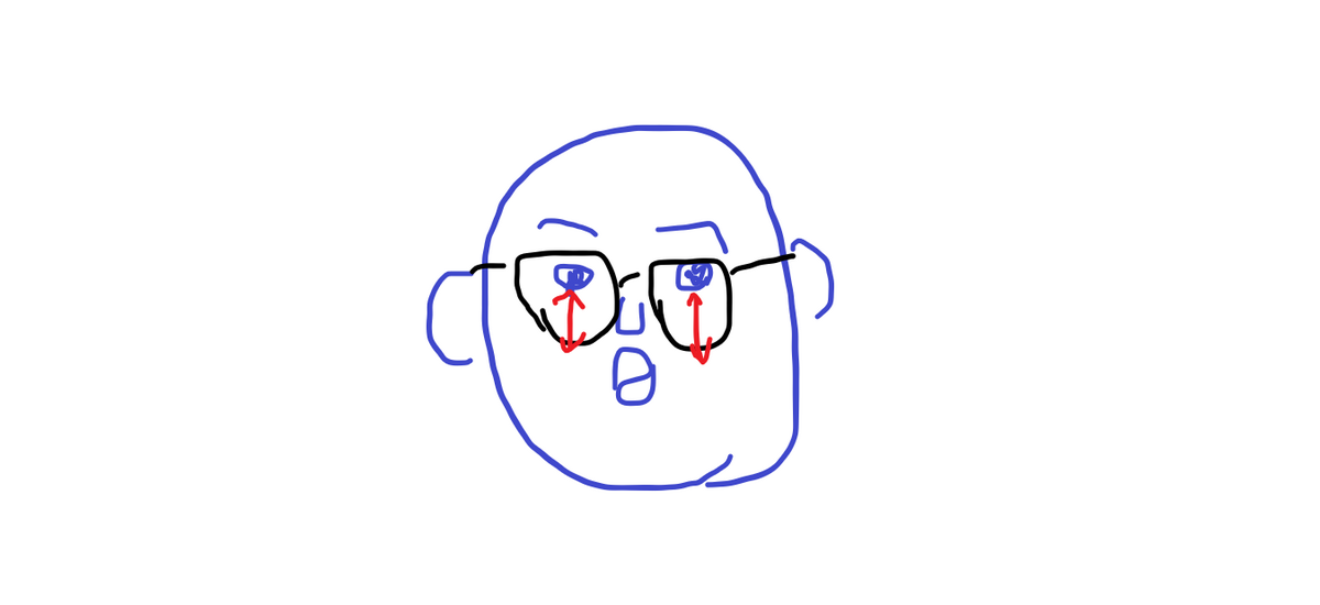 メガネをかけたとき、目がレンズの中央にあるのが一番格好いいんですが、フレームが大きすぎるとレンズの上の方に目があるようになってしまいます。