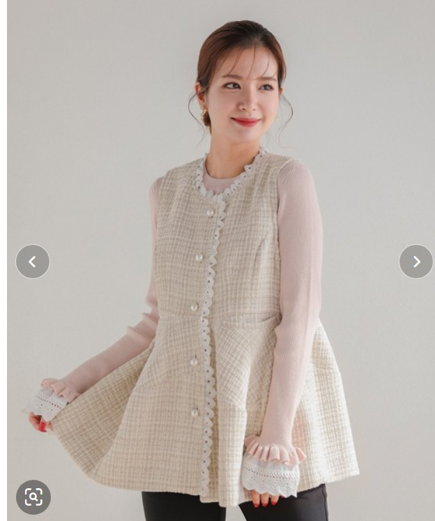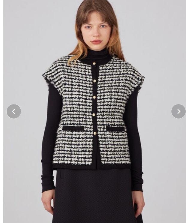 ガーリッシュだけじゃなくてボーイッシュもアバンギャルドもいけるんですが、ツイードのジレです。トリミングが際立っていて、のぺーっとしていません。キュートタイプの得意な「ちょっとした変化」です。
