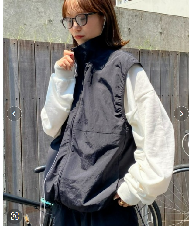釣り人ベストって流行ってるんでしたっけ?これはちょとポケットの数が足りませんが、まぁ今ちょっと思い出したので…このベストのポイントは、襟が立っていることです。丸首より立っているほうがかっこかわいくできます。