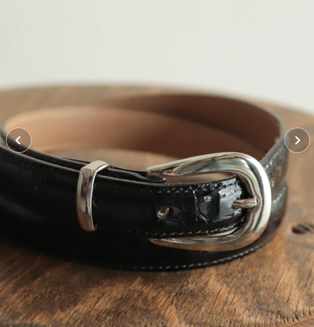 バックルはすっきりとしたスクエア、素材は高級感のある革・エナメルが基本です。