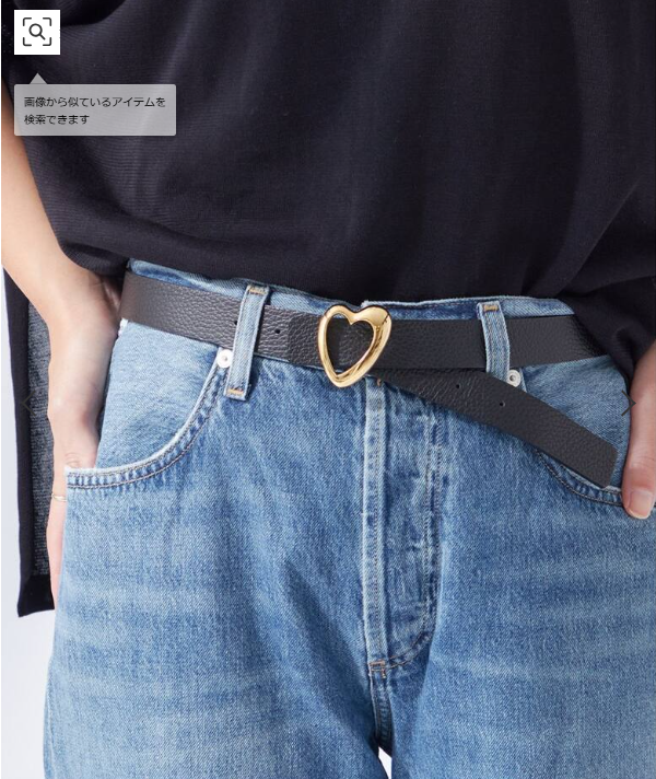 もちろん変わり種のバックルもいけます。このハートは大人でも使えるスタイリッシュな♡ですね。ハートは、キュートタイプの中でもガーリッシュの方が得意とするモチーフです。でも、これくらいシュッとしたハートなら、ボーイッシュタイプの方も使えそう(※ボーイッシュタイプはハートが苦手で、星が得意)
