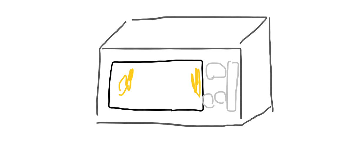 レトルトの何かをあたためていたんですけど、いつもより「ヴーーーーン」の音が大きいな、と思って電子レンジの中を見たら、壁面から火がでていました。